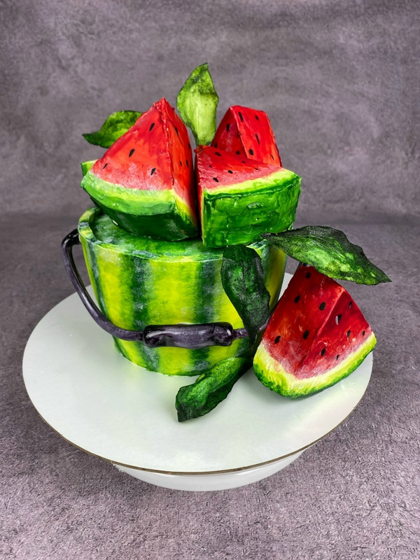 В этом мастер-классе покажу, как превратить медовик в эффектное «арбузное ведро» с реалистичными дольками арбуза внутри.​
