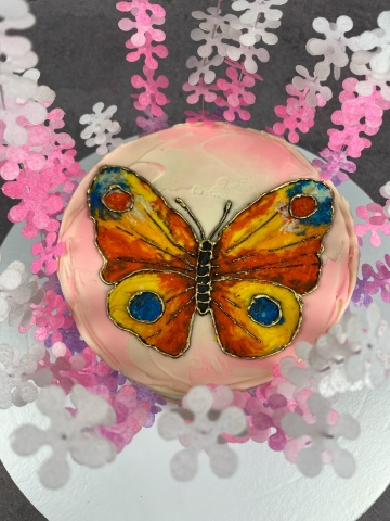 По желанию бабочку можно дополнительно подчеркнуть шоколадной глазурью и украсить золотым кандурином.
